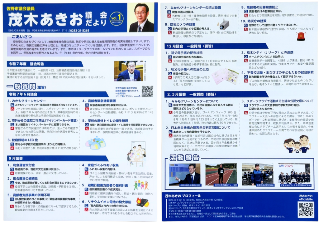 これまでの議会活動の報告を議会だよりにまとめました。ぜひご覧ください。